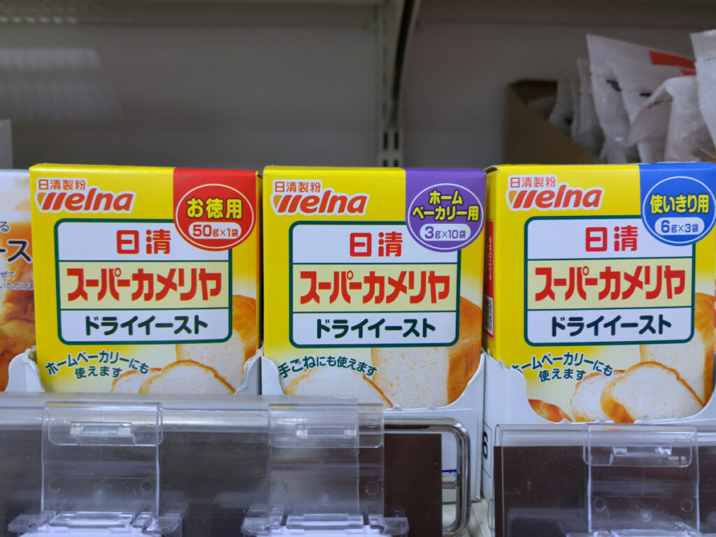スーパーでは、小麦粉のコーナーか製菓材料のコーナーに置いてあります。こちらはあまり種類がなく、せいぜい個包装のサイズの違うものが置いてある程度なので、どれでも同じですが頻繁にパン作りをしないなら個包装のグラム数が一番小さいものを買うといいでしょう。